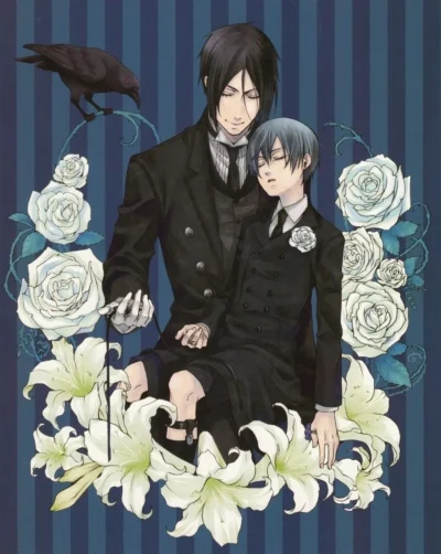 Black Butler Couple With Flower Background Poster
